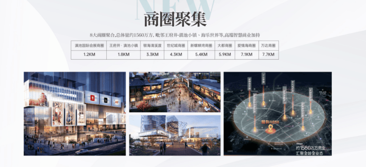 商业:项目紧邻项目的滇池国际会展商圈,约30万方王府井奥特莱斯商业小镇、还有公园1903、爱琴海购物公园、海乐世界、世纪城、大都摩天、银海清溪渡、新螺蛳湾等商圈;项目规划有约17万方商业综合体,满足业主日常家居购物