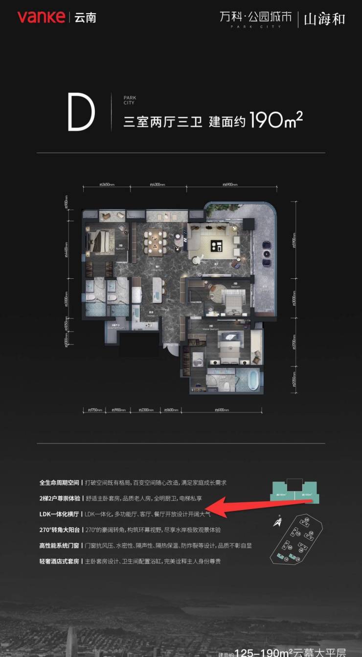 全生命周期空间,2梯2户尊崇体验,LDK一体化设计,270°转角大阳台,高性能系统门窗,轻奢酒店式套房