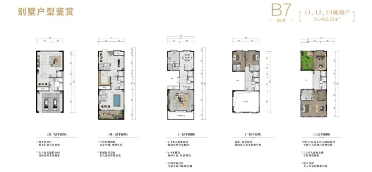 在售户型:建面约112-207㎡六层纯板电梯洋房;建面约417-580㎡低密联排大宅