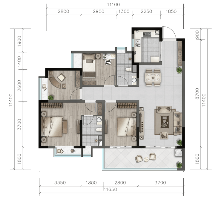 【户型面积】:洋房(81-117㎡)、合院(99-129㎡)