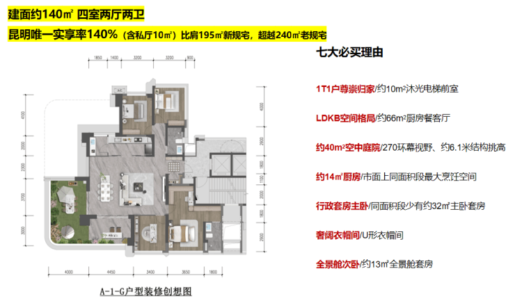 价值七 高定进阶产品——春城核心,昆明四代住宅首选, 超140%实享率,约40㎡、6M挑高空中花园,约10㎡入户花厅