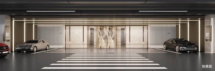 地下大堂臻材精装,乘坐直达电梯即可从地下一步归家,为业主打造一条无风雨归家路径。