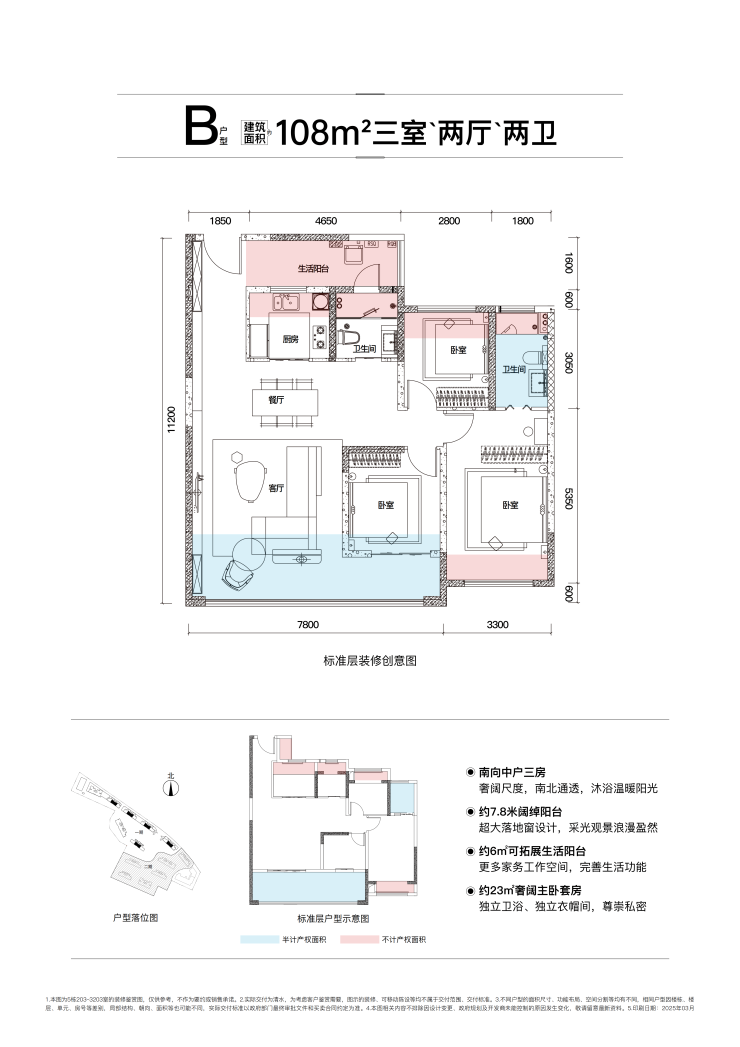 T4——108㎡ 南北向舒适型三房,使用率约102.81%