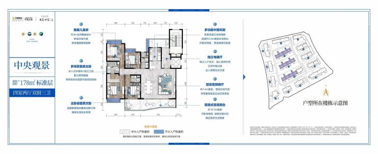 占地:58.41亩;总建面:10.29万㎡;建筑密度:27.32%;容积率:1.66;绿化率:40.10%;总户数:299户;车位:642个;车位配比:1:2.15(户/位);物业费用:3.8/㎡/月;均为独立电梯入户;