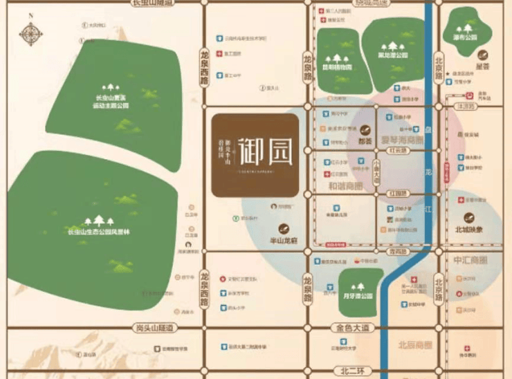 生态:项目坐拥约3300亩长虫山生态公园,尽享纯天然负氧离子氧吧,周边有五大主题公园环绕(长虫山运动公园、昆明市植物园、黑龙潭公园、麦溪运动主题公园、月牙潭公园),北市区的城市绿肺,让您的生活每天都充满了绿色。