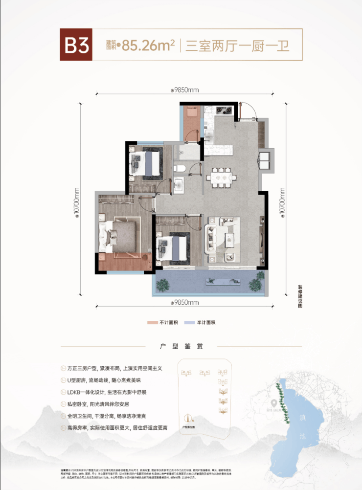 1、建筑面积86-100㎡精装瞰景高层/建筑面积115-135㎡精装板式洋房