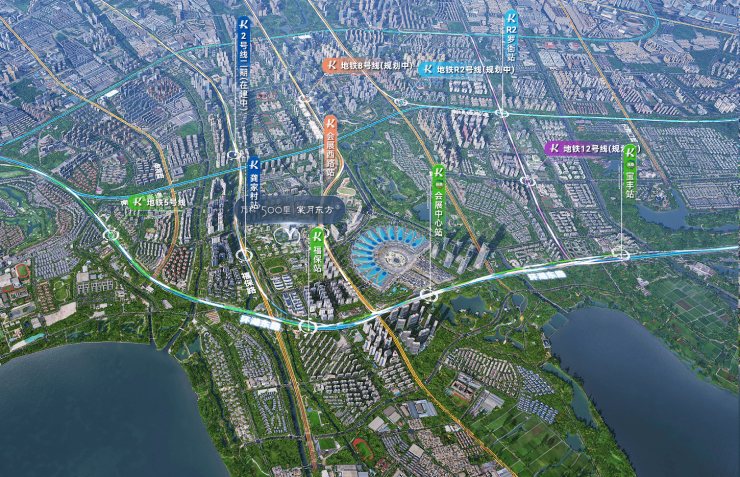 2、交通改善——2/5号线双地铁,城市级主干道环湖东路/飞虎大道