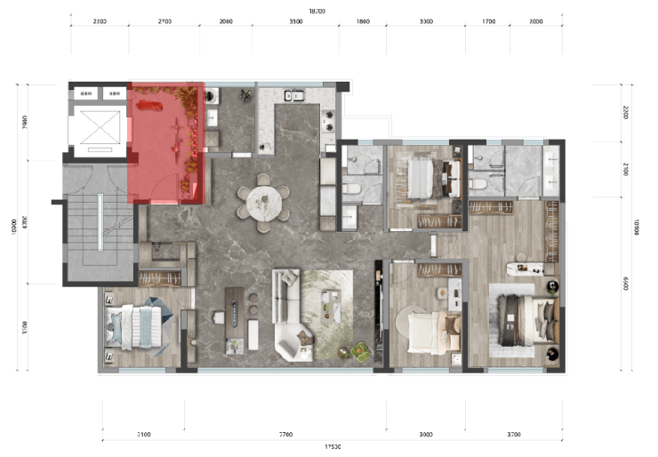 装修意向①:四房·四厅·三卫·双阳台(双套房设计)