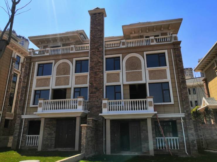 地块开发建设有52栋、196套法式主题别墅,由176套联排和20套双拼产品组成;联排产品以四联排为主,地下1层地上3层,带有前后花园和车库,四联排主力户型面积229、249㎡;双拼户型面积291㎡。产品除了前后花园外,带有电梯入户,同样是地下1层地上3层的结构。