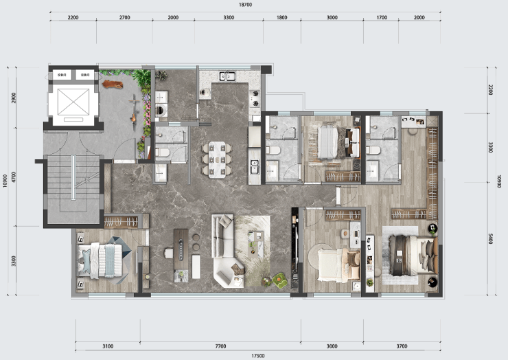 配置比肩甚至超越180㎡级别的大平层,且每个空间的尺寸也堪比大平层的尺度。