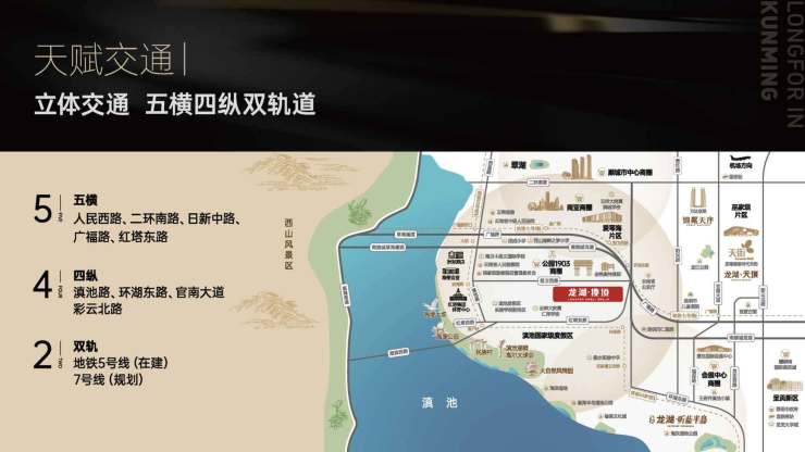 项目拥有两横两纵丰富便捷的交通网络(两纵:广福路海埂路;两横:南接红塔东西路