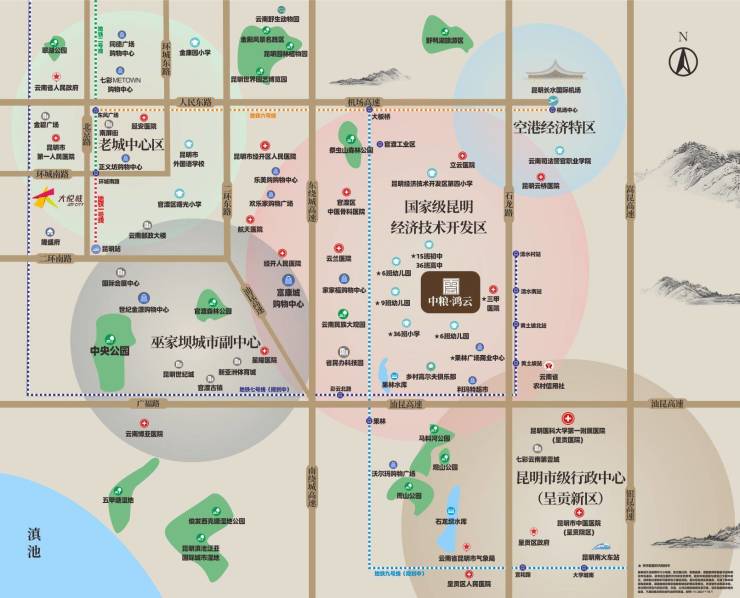 ③中学:地块旁规划中学、昆一中经开校区(市重点)、昆三中经开分校;