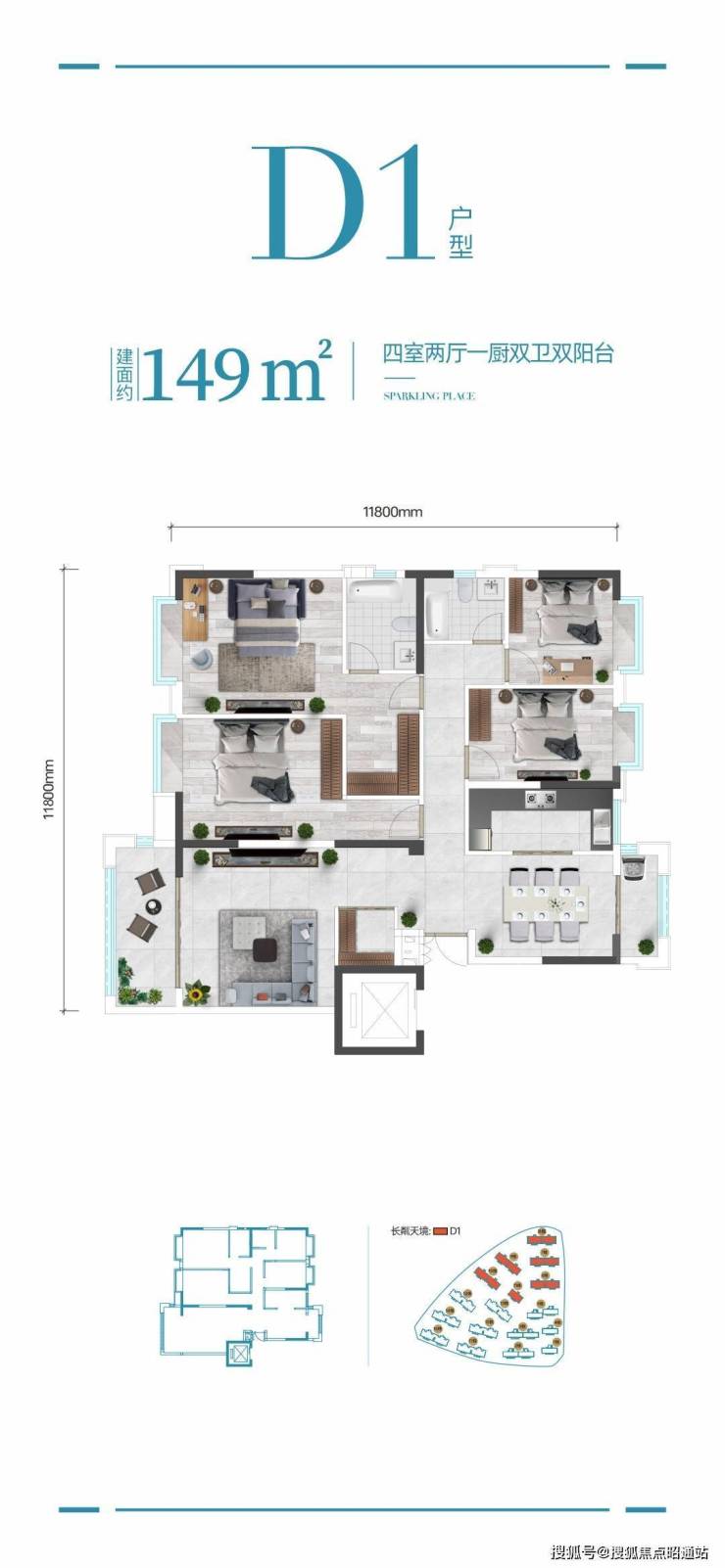 149㎡四房两厅一厨双卫双阳台,实用四房户型,超大U型厨房设计尽享烹饪便利,私享客厅独立超大阳台,餐客厅双阳台设计采光采阳效果极佳,餐客厅分离设计杜绝气味干扰,主卧带独立衣帽空间以及玄关空间带来更多隐私及尊崇