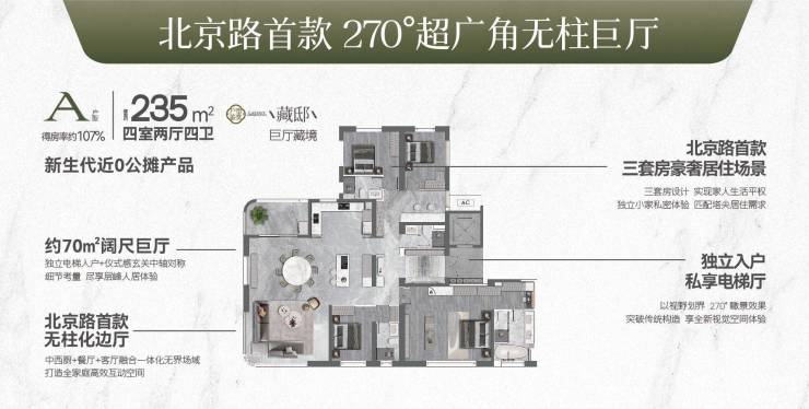 建面约235㎡ | 四室两厅四卫 | 得房率约107%
