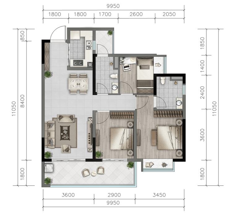 【户型面积】:洋房(81-117㎡)、合院(99-129㎡)