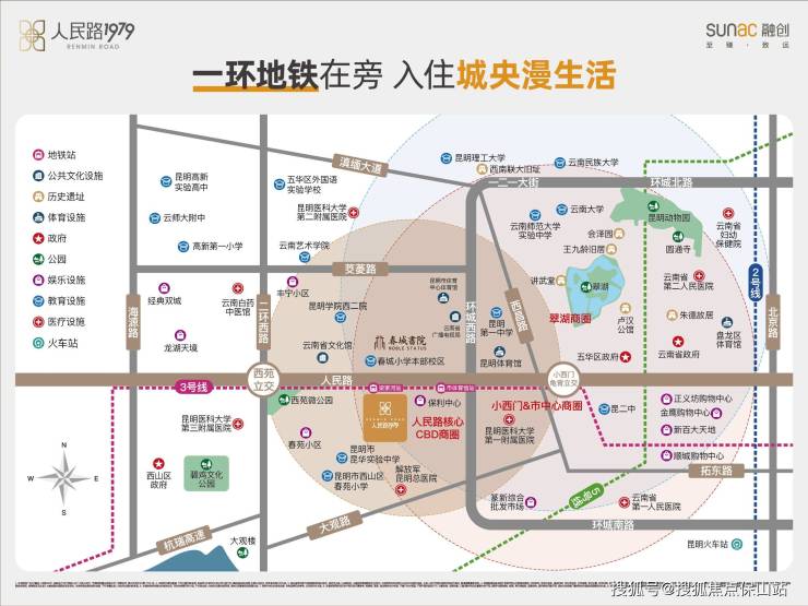 人民路1979位于梁家河地铁站D口,规划负一层联通地铁;做到真正的“地铁上建物业”便捷抵达昆明各大商圈、学校、公园、医院、生活配套及交通中转站,“无障碍、一路通”的地铁归家,极大程度的便捷了家人的日常出行。