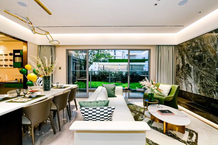 5、产品:两梯两户,纯板式大宅,高配精装标准,可语音控制的全屋智能化配置。