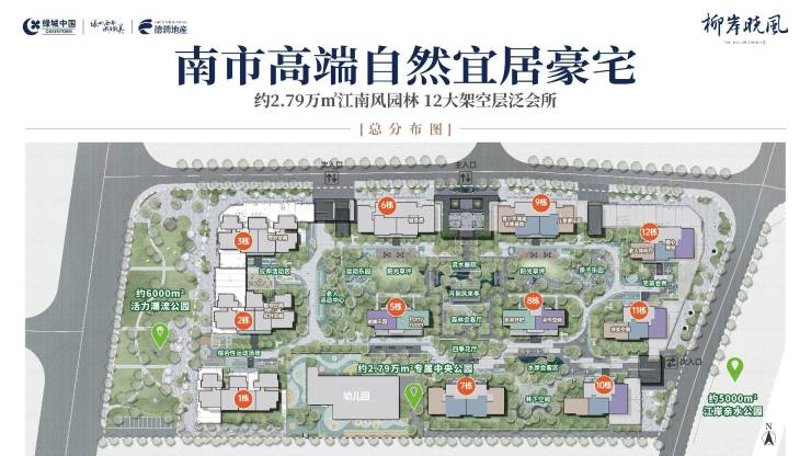 约6000㎡活力公园,5000㎡江岸亲水公园、约2.79万㎡江南风逸趣园林