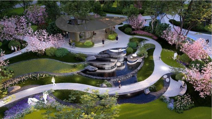 家门口的植物园:约3.2万m²自然山水园区、珍贵树种全冠移植、超70余种植被、8种芳香植物