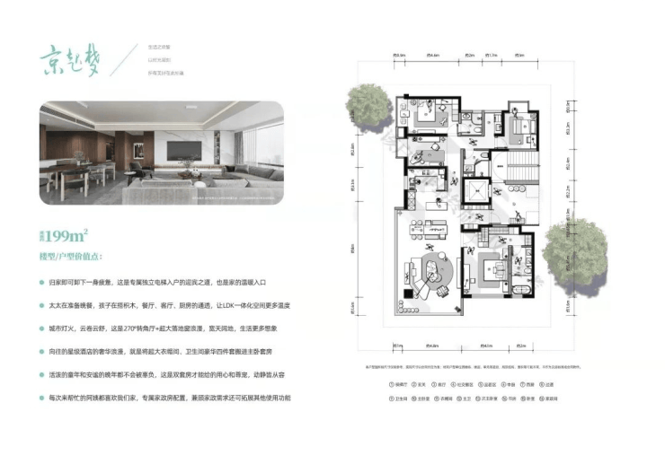 建面约155-260㎡城央天幕大平层。270度景观大阳台、LDK一体化空间设计,强调“两代居”的概念。挖掘室内人性化、存储性、功能性和舒适性。