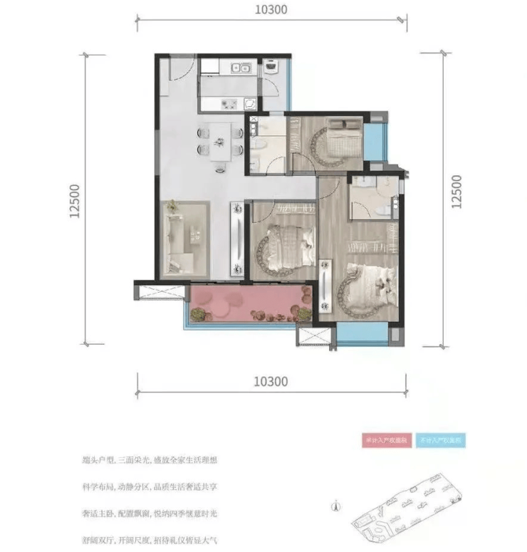 C户型115㎡,三室两厅两卫