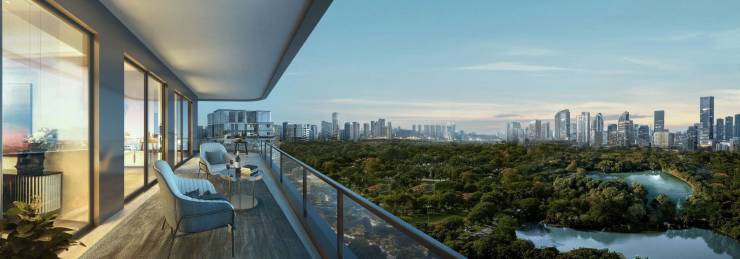 5#栋作为全案唯一一座直面且紧贴省委公园(弥勒寺公园)的楼栋,隐于繁华市井之中,沁润城央自然大境。